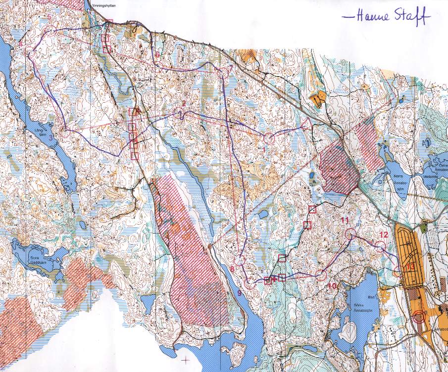 Hanne Staff won the day, but had some problems. Look at her boom at the second control and far-from-the-line route to three. After the rough start, she managed to get it together and win the day. Hanne took an interesting route to 6. She went wide and took a road. Apparently a lot of the runners did not see that route. Hanne won the leg.