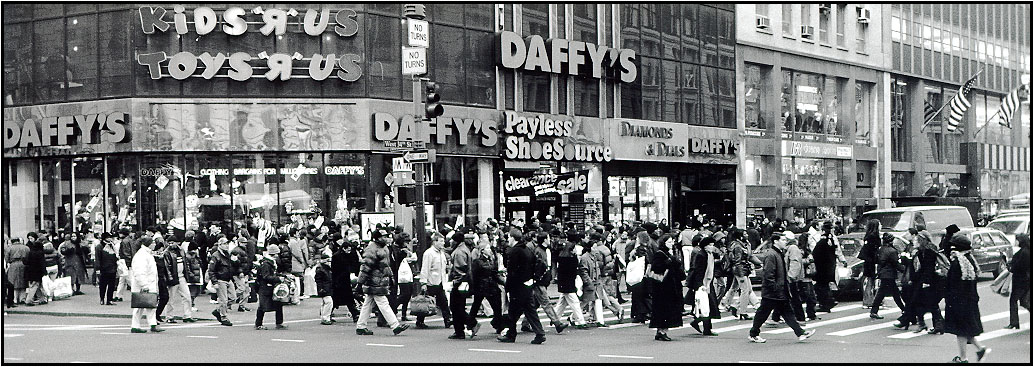 Sorry about the size and width of this. This was taken with a 35mm lens and printed to 14 inches wide. Entire population of Alaska in one NYC intersection!